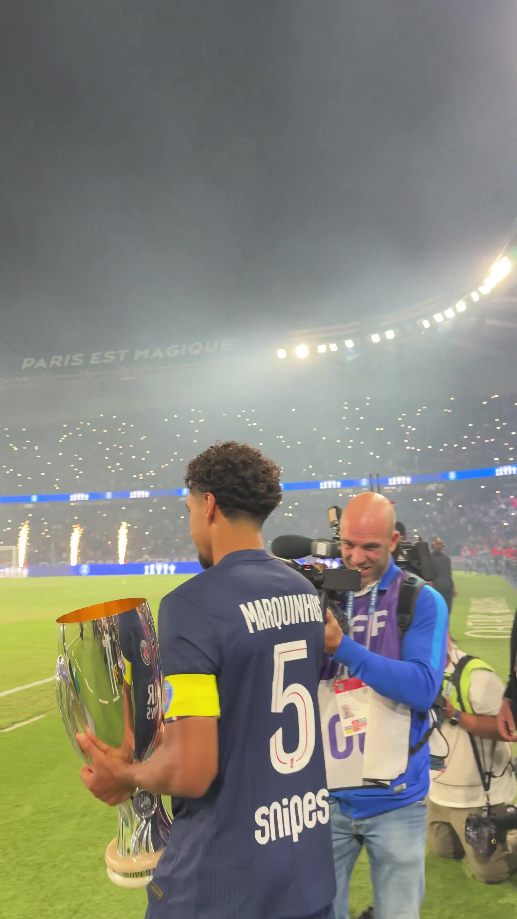 巴黎在王子公园球场展示了球队上赛季赢得的奖杯,以及欧洲超等杯奖杯,俱乐部官方社媒晒出视频,配文:“咱们的冠军。”