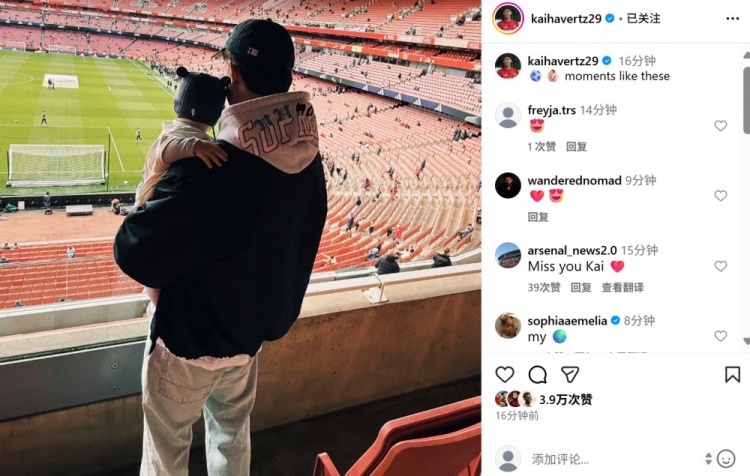 本场比赛因伤缺战的哈弗茨也抱着我方的孩子来到现场不雅战,球员在个东谈主社媒晒照写谈:“⚽️👶🏻就像这么的工夫!”