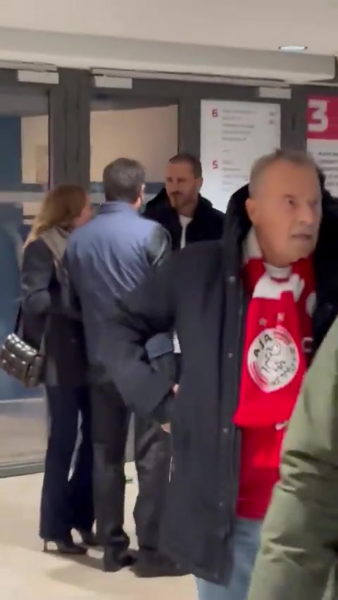 博努奇与前尤文主席安德雷亚-阿涅利齐来到阿姆斯特丹,不雅看这场比赛,两东说念主再见并寒暄。