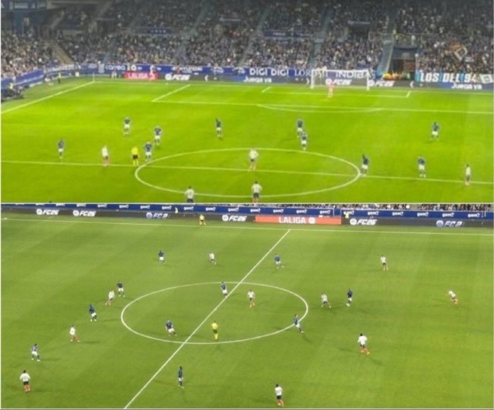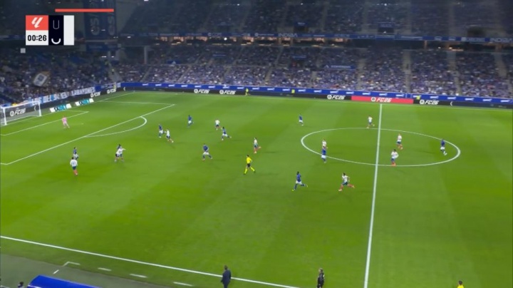 西甲未播出本场比赛的前25秒,主裁吹响开场哨后,镜头飞快切到球场的鸟瞰视角,放了快要20秒才回到球场内,但给的是两边主帅特写。待到比赛画面规复,比分牌上的计时器显露已是0分26秒。