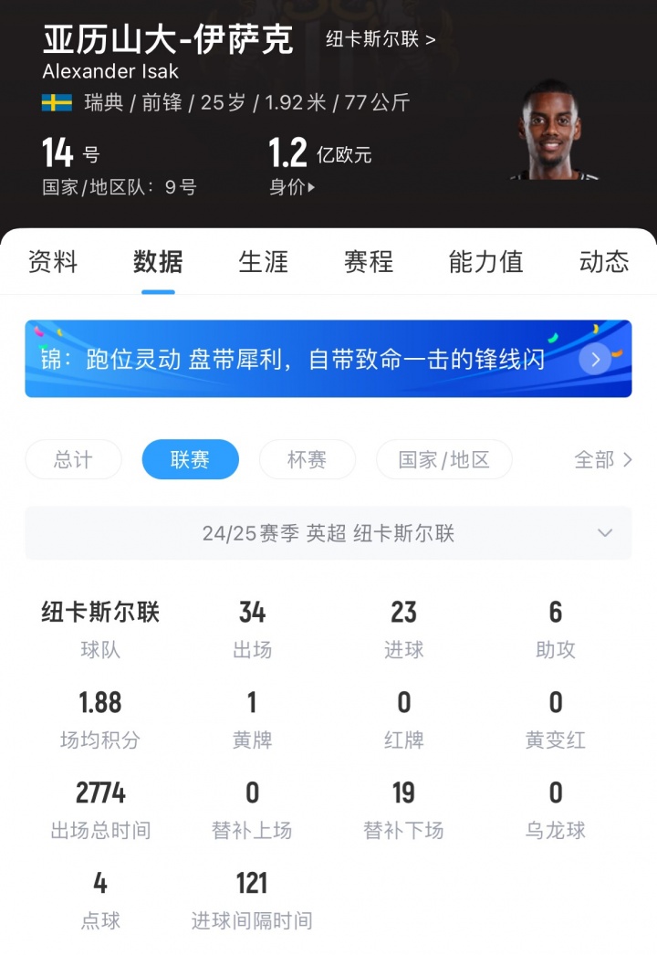 音讯称,伊萨克已与利物浦就一份到2031年规章的合同收尾原则性理论契约。伊萨克但愿在现时转会窗口尽早加盟利物浦。两家俱乐部正在战斗。