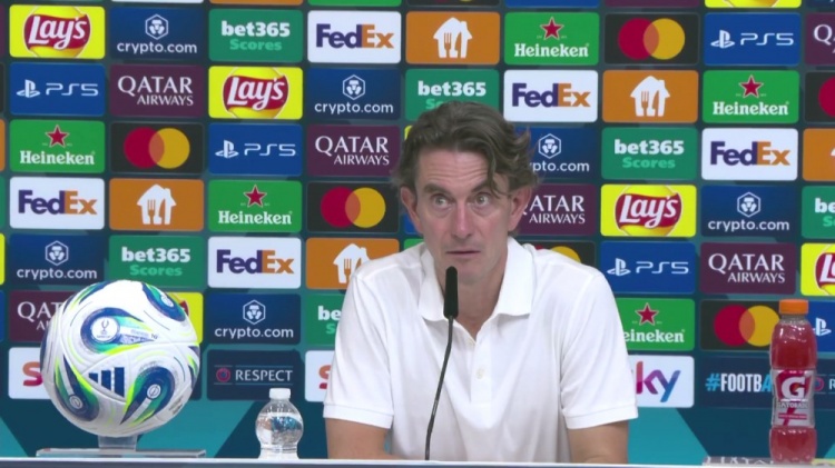 8月14日讯 欧洲超等杯决赛,热刺在老例时间2比2与巴黎战平,终末在点球大战中惜败。赛后,热刺主帅弗兰克在新闻发布会上汲取了热刺记者阿拉斯代尔-戈尔德与其他媒体的采访。