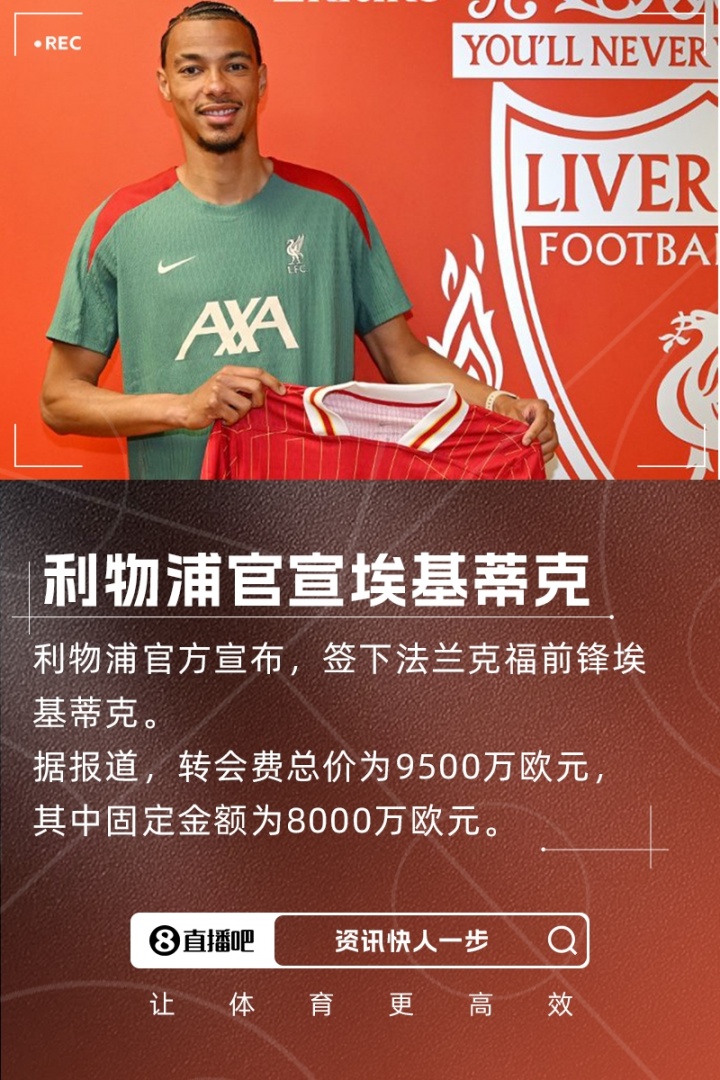 埃基蒂克今夏以9500万欧总价从法兰克福加盟利物浦,新赛季开局3场均有进球,孝顺3球1助。