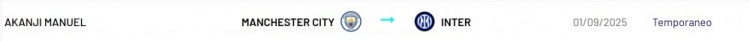 阿坎吉从曼城加友邦米,往复花式表露为租出,据此前罗马诺报说念称,这笔往复为200万欧租出费+1500万欧买断费。