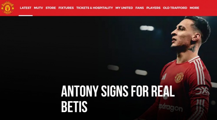 9月2日讯 巴西边锋安东尼还是官宣加盟贝蒂斯,曼联官网也发文奉上告别: