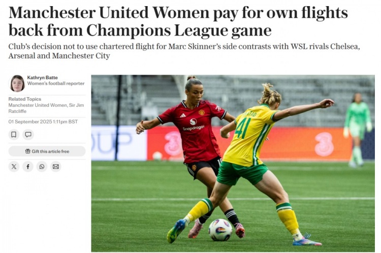 9月1日讯 据《电讯报》报说念,曼联俱乐部未安排包机,让自家女足私费购买欧冠客场返程机票。
