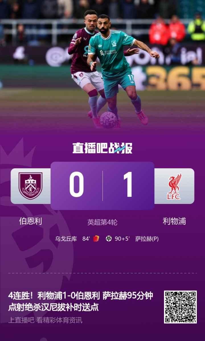 09月14日讯 英超第4轮,伯恩利补时临了一分钟遭到点球绝杀,主场0-1负于利物浦,而这依然是伯恩利贯穿第二场比赛被绝杀。