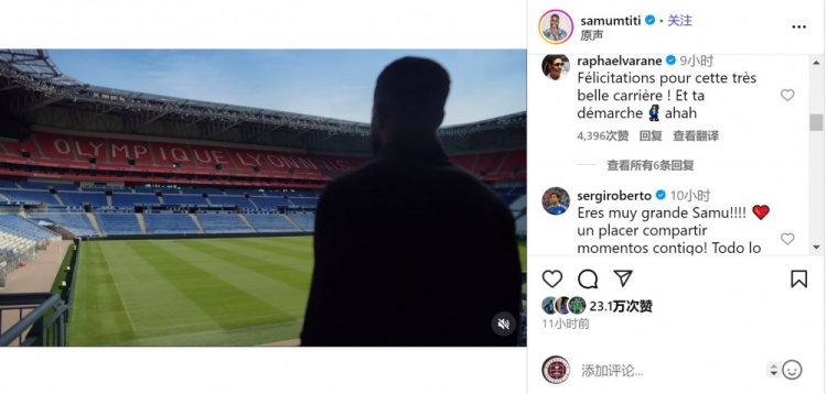 巴萨官方:谢谢你,萨穆!祝你在东说念主生的新阶段好运