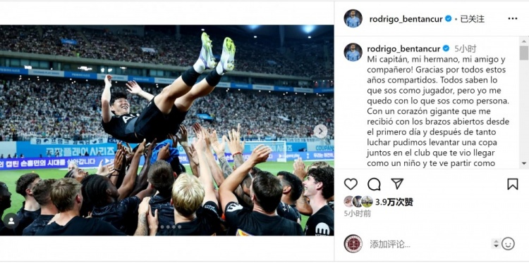 感谢你所作念的一切,昆仲,咱们在俱乐部会相当思念你!祝你和你的家东说念主在新征途中一切顺利!但愿很快能再次再见,外传!我相当爱你!”