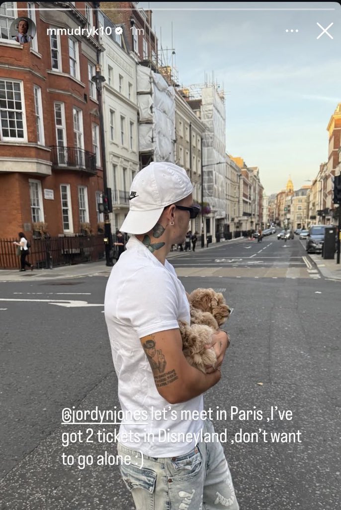 穆德里克还在个东说念主社媒ins story艾特乔丁-琼斯:“让咱们在巴黎再见吧,我有两张迪士尼的票,不念念一个东说念主去。”之后穆德里克删除了这条讯息。