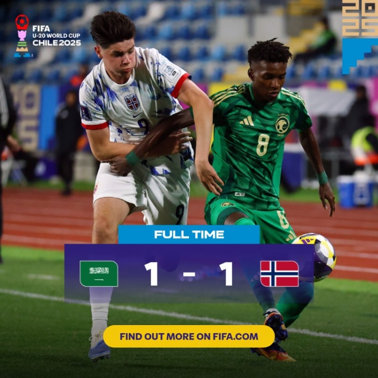 10月6日讯 世青赛(U20宇宙杯)小组赛第三轮比赛,沙特1-1战平挪威。