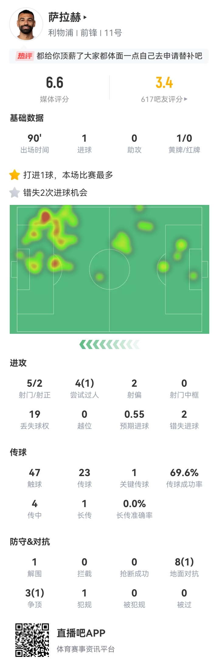 凌晨英超第9轮,利物浦2-3不敌布伦特福德。萨拉赫在比赛临了时辰打入一球,但他今天的发达照旧不可让球迷欢跃,给他打出了3.4分的低分。