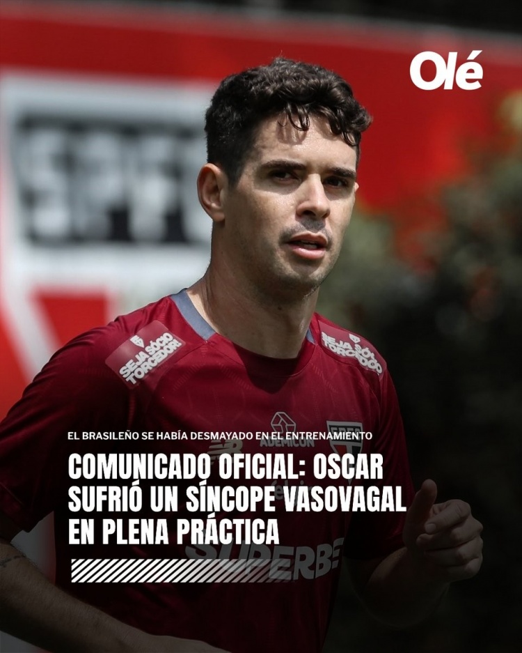 11月14日讯 圣保罗俱乐部官方声明,奥斯卡在练习中顷刻间我晕,并被送往阿尔伯特·爱因斯坦病院的腹黑科。经会诊,奥斯卡所阅历的是血管迷跑神经性晕厥(也称为血管迷走性虚脱)。