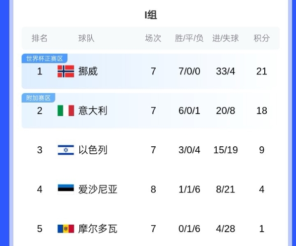 I组的时事圣洁明了,挪威和意大利王人笃定了参加小组前二。除非意大利以9球及以上上风打败挪威,不然挪威就将取得小组第一纵贯寰宇杯。挪威上一次参加寰宇杯还要追念到1998年,那时哈兰德还没出身。