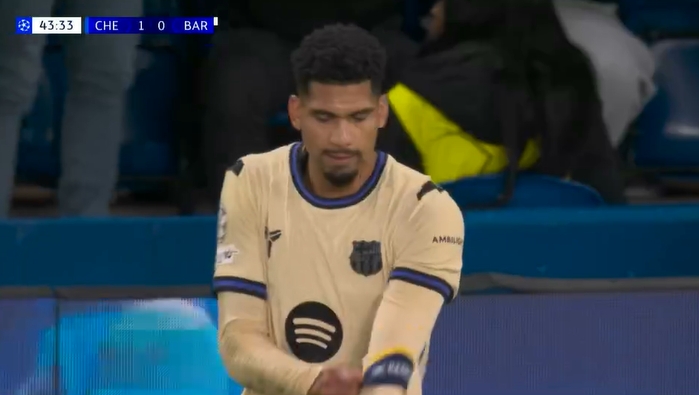 11月26日讯 欧冠联赛阶段第5轮,切尔西半场1-0卓著巴萨,巴萨本场首发队长阿劳霍第44分钟吃到本场第2张黄牌,两黄变一红被罚下场,巴萨落入半场一球逾期+少打一东说念主的窘境中。