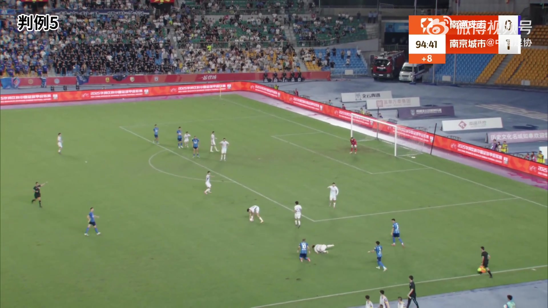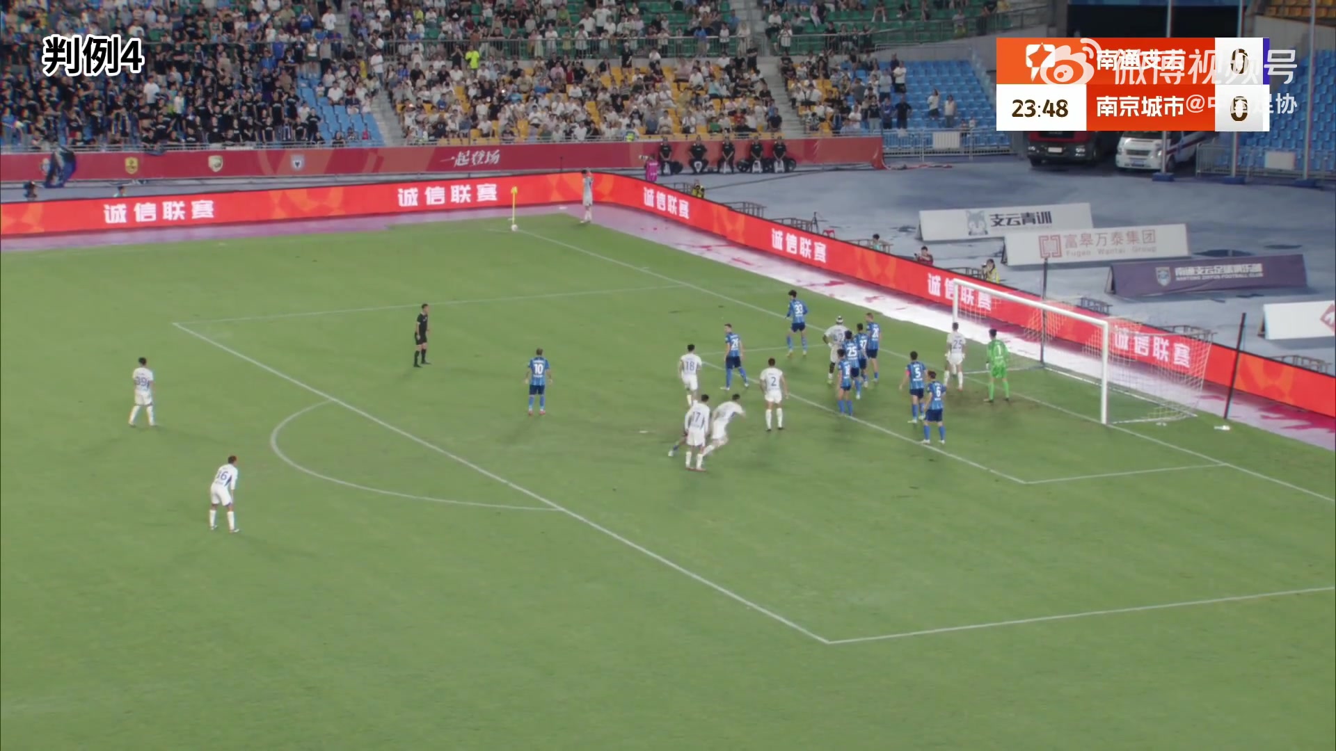 关于此判例,评议组一致以为:角球踢出时,南京城市队员与对方守门员尚有一定距离,且背对守门员,作念出普通争抢球的手脚。南通支云守门员向斜上方跳起争抢球,两边构兵不属于犯规,后续进球有用。评判员判攻方犯规、进球无效的决定均为诞妄。(视频:判例4)