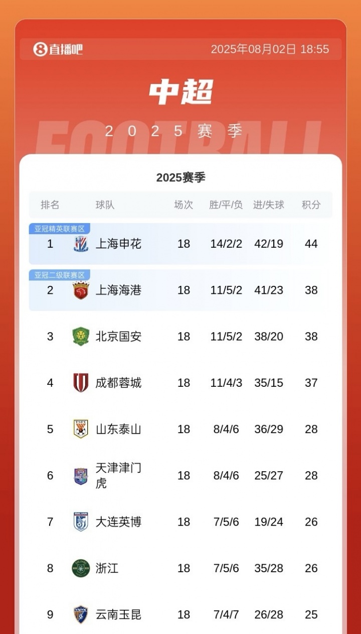 申花在积分榜积44分领先排名第9的玉昆19分,但玉昆凭借高原主场优势已取得主场五连胜,此刻申花半场1-3落后。