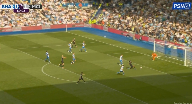 08月31日讯 曼城vs布莱顿第60分钟,马尔穆什外脚背传中,鲍勃抢点打偏!