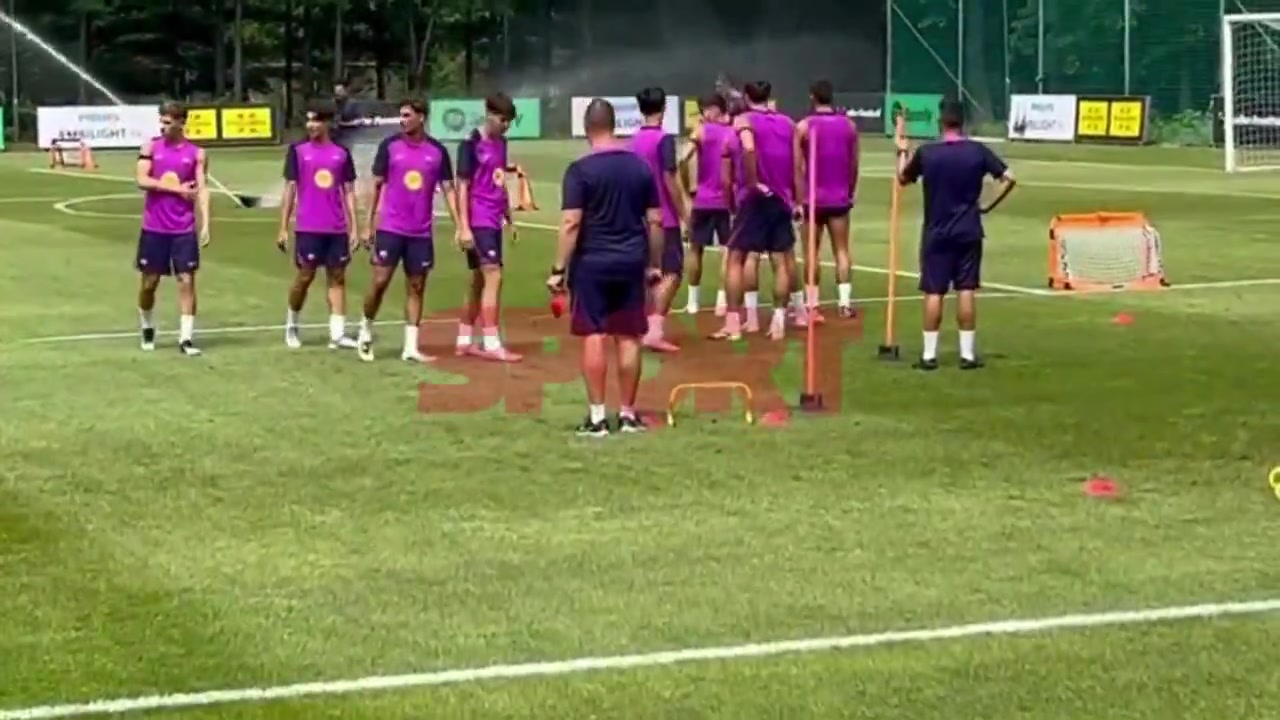 8月3日讯 《每日体育报》报道,巴萨在训练中用洒水器降温。