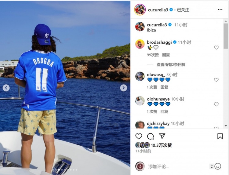 库库雷利亚随切尔西赢得世俱杯冠军,他在社交媒体上晒出多张在伊维萨岛度假照片,其中包括身穿蓝军名宿德罗巴球衣的照片。