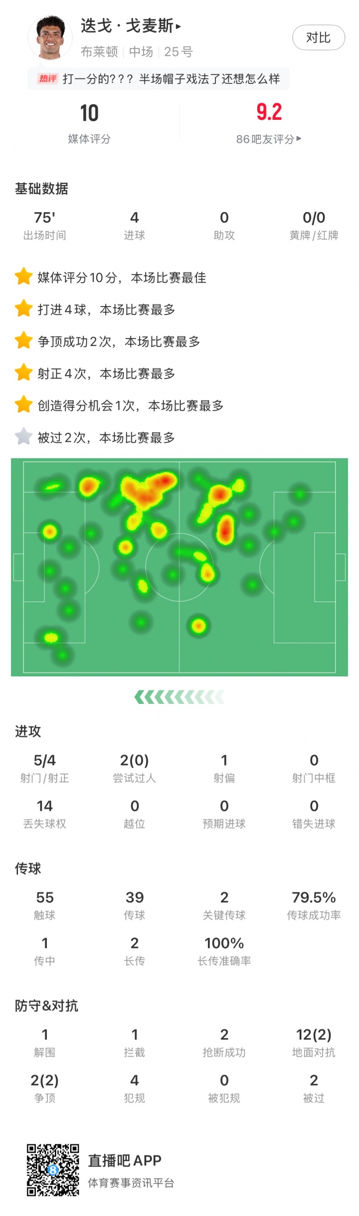 09月24日讯 联赛杯第三轮,布莱顿6-0巴恩斯利。本场比赛,迭戈-戈麦斯代表布莱顿上演了大四喜。