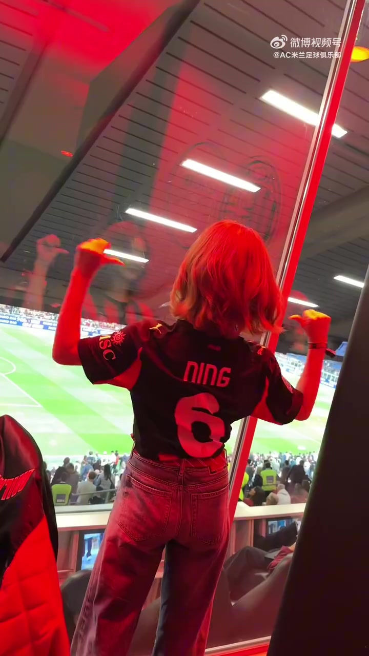 AC米兰官博今日更新,晒出歌手刘些宁现身圣西罗观战本场比赛的视频。视频中刘些宁身穿印有自己名字的米兰6号球衣,在看台进行拍摄。据悉刘些宁近期受邀来到米兰,参加米兰时装周。