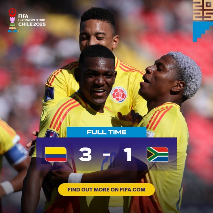 下半场,南非10号球员维拉卡齐在第51分钟点射扳平比分,随后哥伦比亚前锋比拉利尔在第63分钟和伤停补时梅开二度,帮助哥伦比亚3-1赢下比赛。