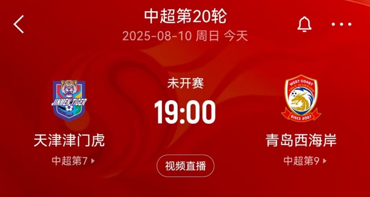 08月10日讯 今晚19:00中超第20轮,津门虎vs西海岸。