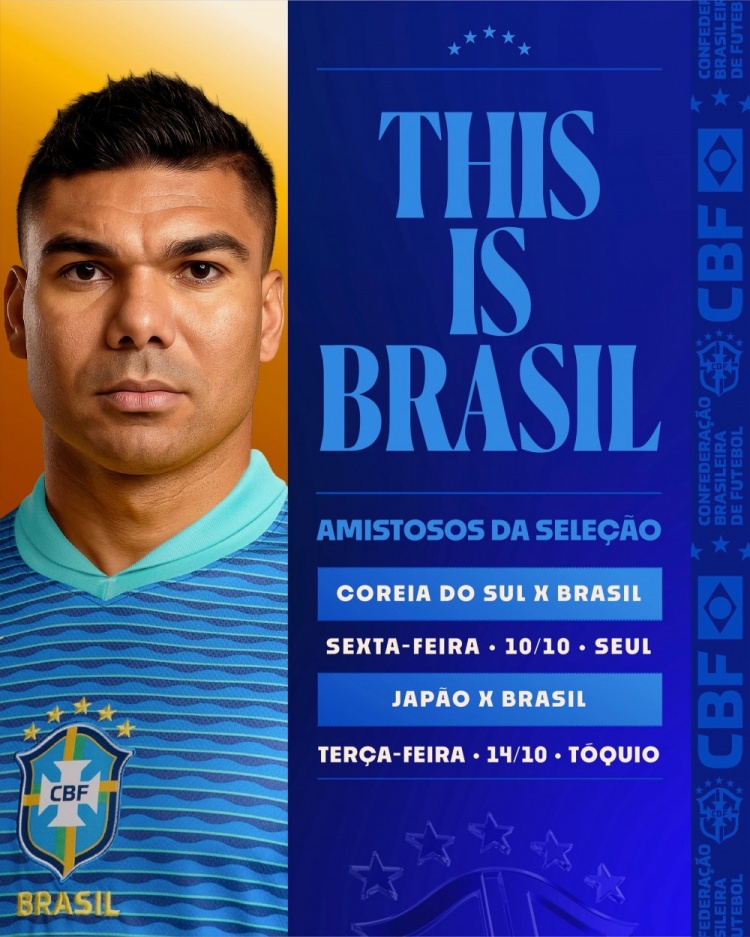 巴西足协发布公告,阐发10月份的友谊赛敌手,巴西10月10日在首尔对阵韩国、10月14日在东京对阵日本。