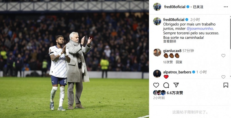 弗雷德晒出我方和穆帅在赛场的同框照,配文写谈:“感谢您再次与我并肩战争,穆里尼奥先生。我会耐久为您加油,祝您再次取得告成,也祝您翌日好运。”