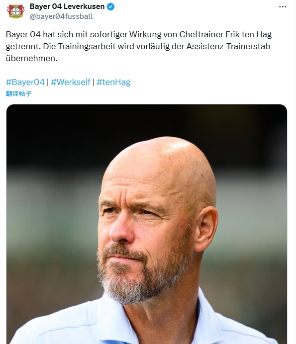 勒沃库森官方:即日起打消埃里克-滕哈赫主栽种职务,覆按使命暂由助理栽种团队领受。
