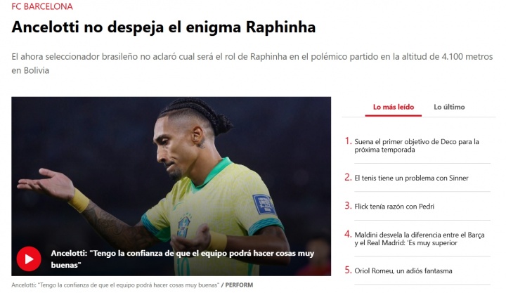 巴西将在周二对阵玻利维亚,巴萨本但愿拉菲尼亚粗略无用在海拔高达4100米的场地进行比赛,而巴萨这一愿望最终未能罢了。现在拉菲尼亚仍在巴西,明日将随队进行复原性教练。他在本日首发出战78分钟,在上半场弘扬出色。