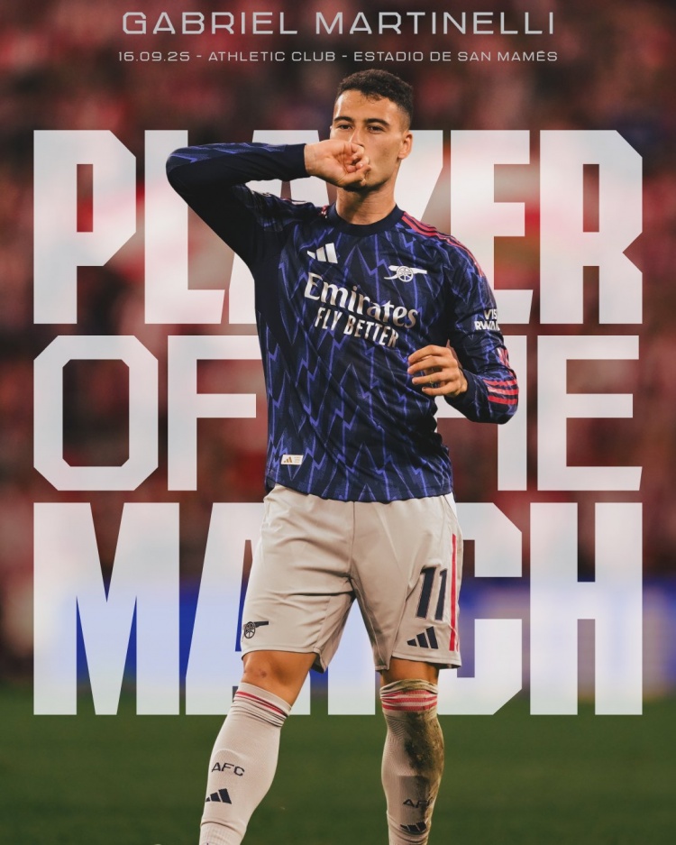 此役马丁内利71分钟为阿森纳替补出场,孝敬1传1射,他当选本场比赛最好球员。