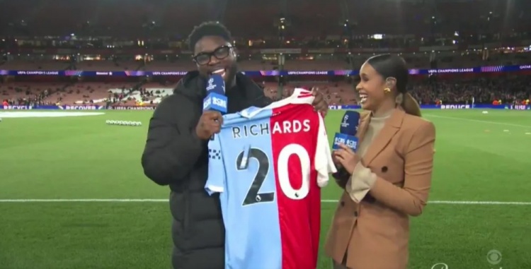 37岁的理查兹受邀现场评述阿森纳vs马竞的欧冠比赛,当他站在镜头前时,转播员送给他一份止境的礼物。