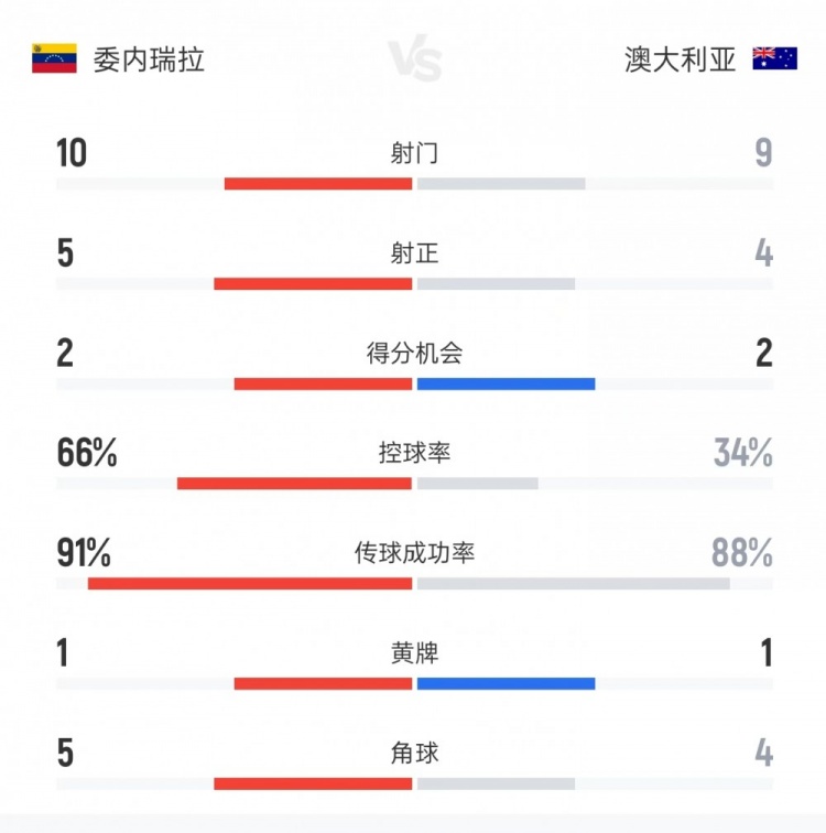 此役上半场热苏斯·拉米雷斯为委内瑞拉破门,下半场两队均无建立,最终委内瑞拉1-0澳大利亚。