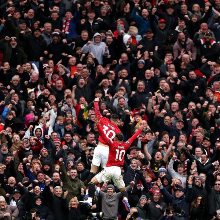卡塞米罗庆祝得分 时,拉起曼联队标 竖起大拇指,而梦剧场观赛人群 则向他高呼「再踢一年、再踢一年」。因为35万英镑的高额周薪,卡塞米罗留下已经没可能,俱乐部官宣了他的离开,但巴西国脚可以好好享受最后的8场赛事 。