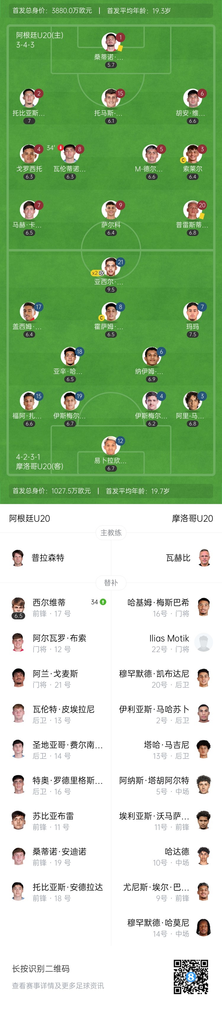10月20日讯 北京时分7:00,世青赛决阿根廷U20对阵摩洛哥U20。上半场,阿根廷门将巴比出击放倒敌手,VAR回看后判罚了黄牌+苟且球,扎比里苟且球径直破门!随后摩洛哥反击,扎比里再下一城!半场狂妄,摩洛哥U20暂时2-0朝上阿根廷U20。