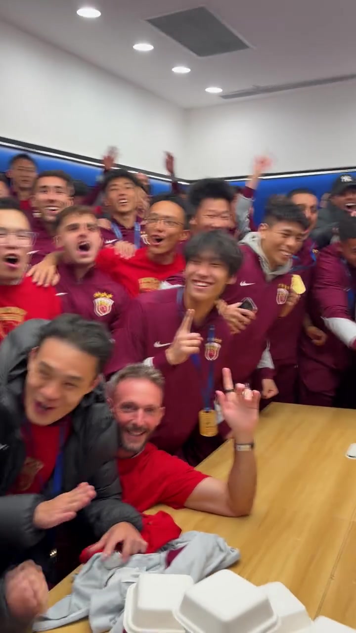 11月22日讯 海港记者刘闻超发布视频,在夺得2025赛季中超冠军后,上海海港全队在更衣室欢庆夺冠。